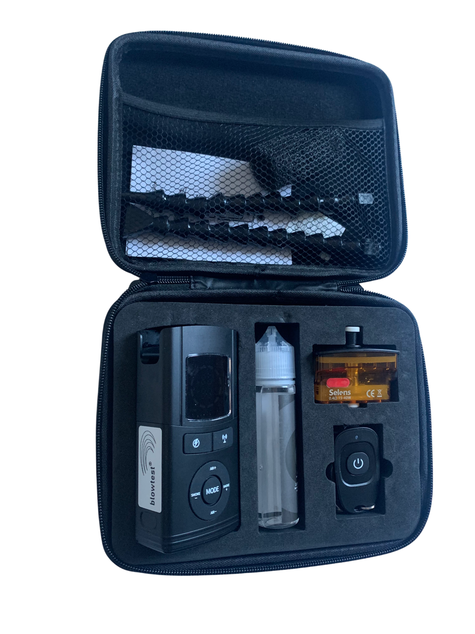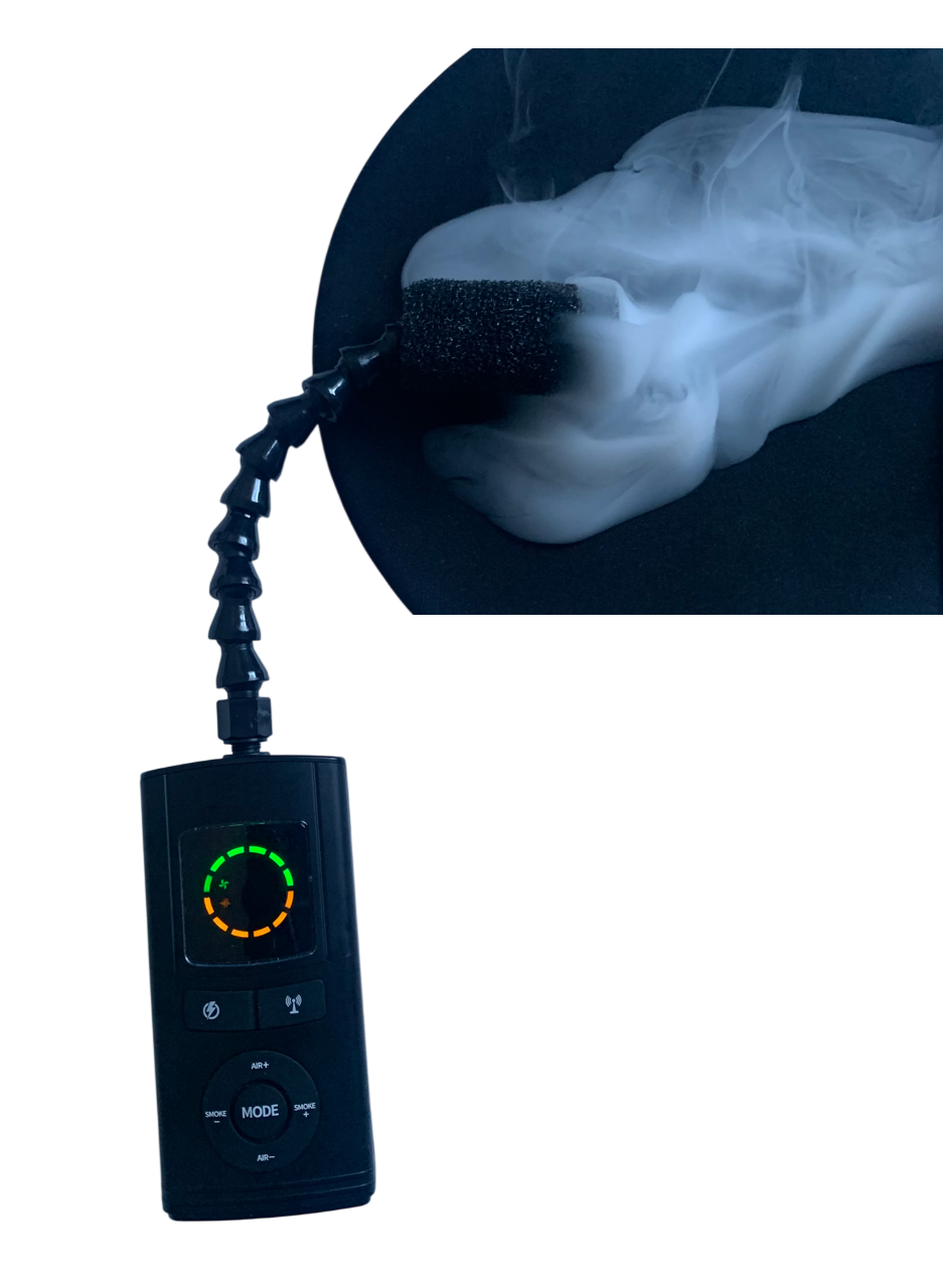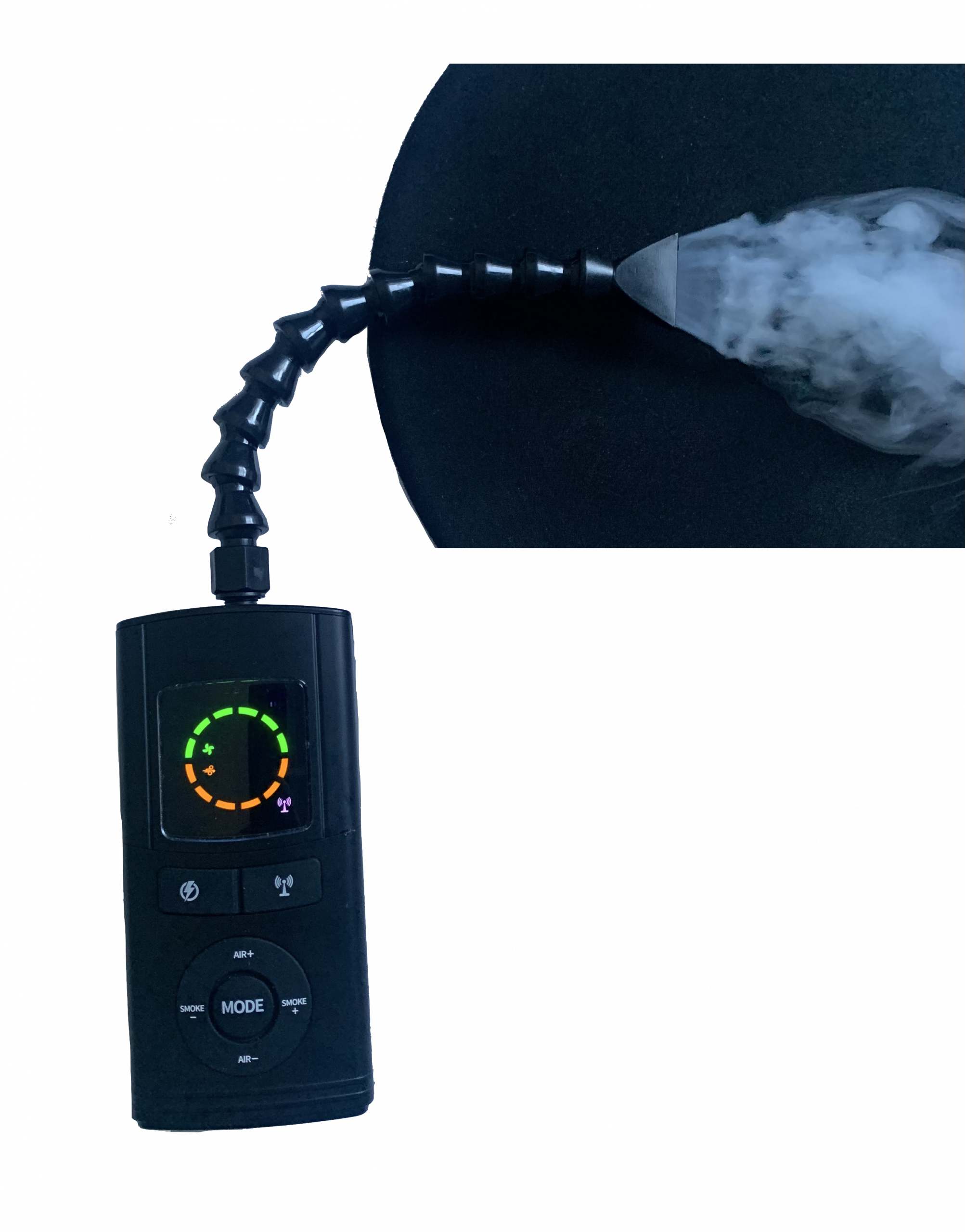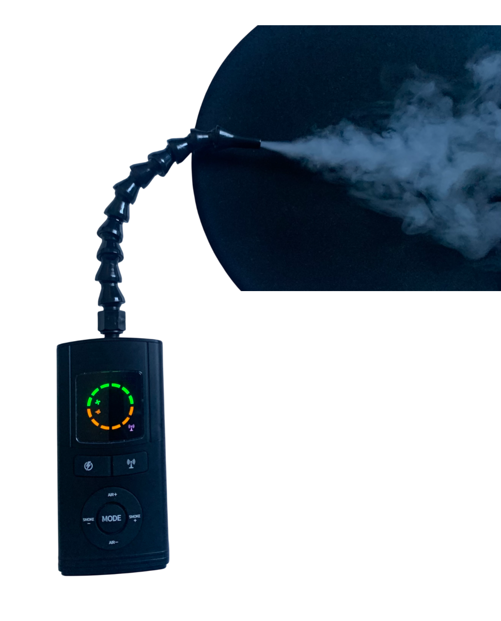 Nebelpistole zur Visualisierung von Luftströmung durch Schweberauch zur Leckagenortung in der Gebäudehülle.